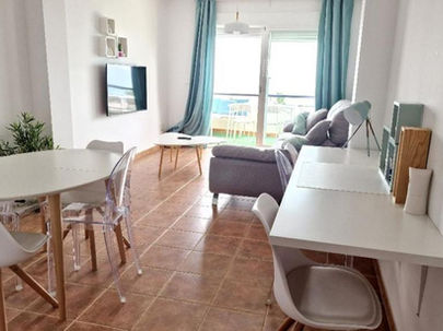 Beachfront Frontline beautiful two bedroom apartment situated in one of the best front line locations in Mojacar with spectacular panoramic views of the beaches and Mediterranean sea that is easily accessed just a few steps away. Secure underground parking; 5 restaurants opposite the apartment, a wider choice of bars, restaurants plus banks, supermarkets and farmacias are all within easy walking distance. Communal pool. The attractively furnished air conditioned accommodation provides fitted kitchen with oven, hob, fridge/freezer, dishwasher, washing machine and microwave appliances plus coffee pod machine and just along the hall is the lounge/diner with table chairs and breakfast bar/workstation, extending through to the lounge area with comfortable sofa, tv and coffee tables. Patio doors access the south east facing balcony terrace with seating and dining areas from which to enjoy the wonderful views. A small hallway leads to the master bedroom, again with extensive views, a fitted wardrobe and has an adjacent bath/en suite shower room. Bedroom two is a good size with fitted wardrobe and twin beds with view over the pool area, and is next to the separate shower room. Fibra Optic 600mb Wifi included. Guests can access the apartment by stairs from the secure underground parking area and also from the pedestrian front and rear gated entrances. The communal pool area is for guests use only. Other things to note Bedroom 1 has one double bed and Bed 2 has two single beds Registration number VFT/AL/09046